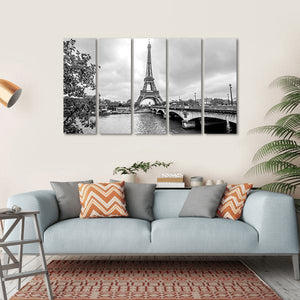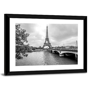 This canvas art captures the iconic Eiffel Tower framed by the Seine River, showcasing a classic cityscape. Its black, white, and gray palette evokes a historic mood, perfect for adding a touch of Parisian charm to any space.