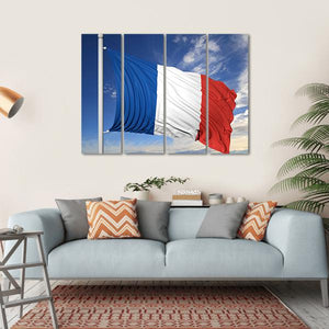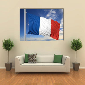 This stunning artwork features the French flag waving gracefully against a vivid blue sky, evoking a sense of patriotism and pride. Its realistic portrayal captures the motion of the flag and the beauty of the clouds, making it a striking addition to any space.