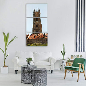 Fribourg Cathedral Tower Above Terracotta Roofs Vertical Canvas Wall Art