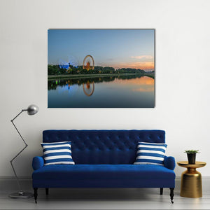Capture the serene beauty of Regensburg with this canvas featuring a Ferris wheel against a vibrant sunset sky. The peaceful scene is enriched by the reflection on the river and the gentle motion blur of the lights, making it a lovely addition to any art collection.