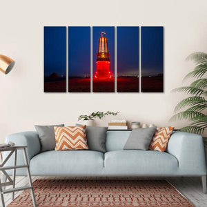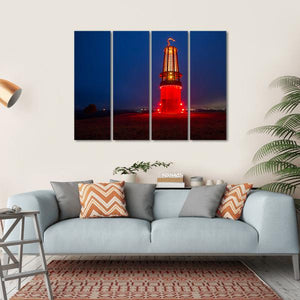 Capture the essence of a lighthouse against a dramatic sky with this canvas wall art. The mysterious interplay of red, blue, and dark tones evokes a nocturnal atmosphere, perfect for adding depth to your space.