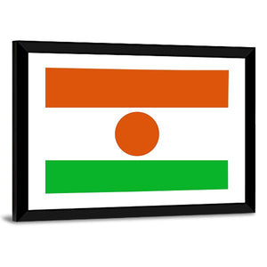 This canvas art features the Flag of Niger, showcasing bold orange, green, and white colors in a geometric, minimalist design. With its symmetrical composition and striking central circle, it makes a distinctive addition to any room decor.