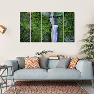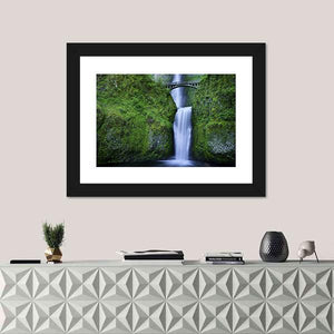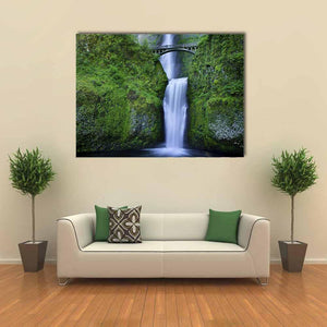 Bring the tranquility of Multnomah Falls into your home with this captivating canvas. Featuring a stunning waterfall and a small arched bridge surrounded by lush green cliffs, it creates a serene and majestic atmosphere. Perfect for nature lovers looking to enhance their wall decor.