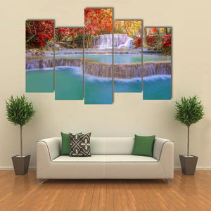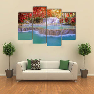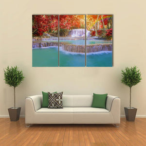 Tiered Waterfall in Autumn Forest Canvas Wall Art