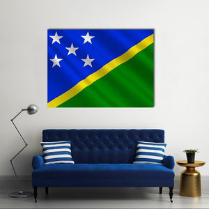 Celebrate the vibrant spirit of the Solomon Islands with this striking flag canvas art. Featuring a geometric design that showcases bold colors and five distinct white stars, it adds a lively touch to any space.