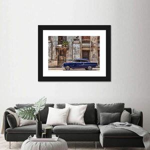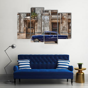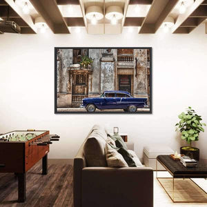 This canvas features a vintage car alongside a weathered building, evoking a sense of nostalgia. With its blue, gray, and brown palette, it brings an urban decay charm to your décor.