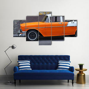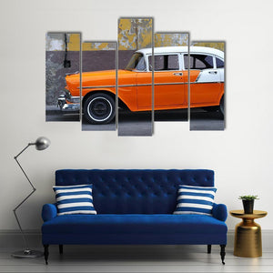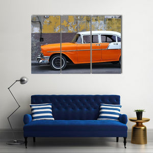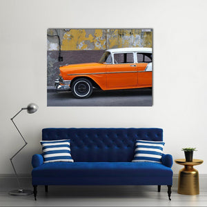 This canvas art features a classic orange car against a weathered wall, capturing the vibrant and nostalgic essence of Havana. Its side profile adds a unique perspective, making it a striking addition to your wall decor.