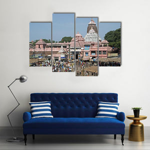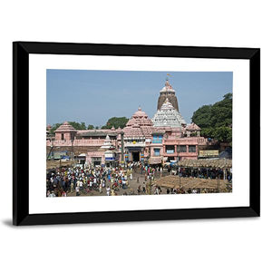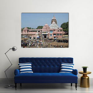 This canvas art captures the vibrant atmosphere of Jagannath Temple in India, featuring a bustling scene filled with crowds and market stalls. The warm palette of pink, white, blue, and green brings the spirituality and liveliness of this iconic architectural site to life.