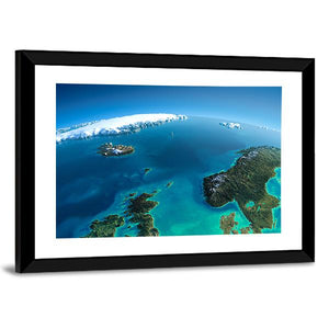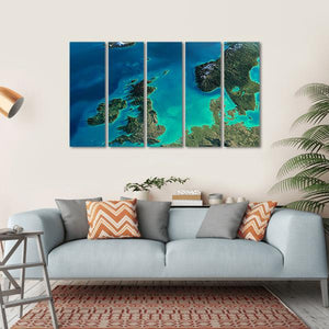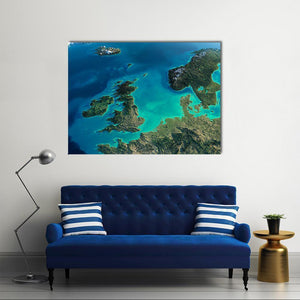 Experience Denmark from a breathtaking aerial perspective with this canvas wall art. Featuring detailed topography and a palette of blue, green, and brown, it captures the natural beauty of the landscape. This piece brings an informative and expansive vibe, perfect for enhancing any space with its geographic realism.