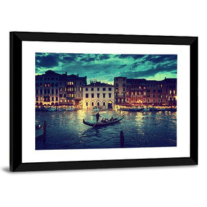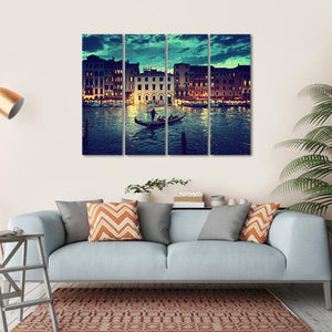 This canvas captures the serene beauty of Venice's Grand Canal at sunset, featuring a gondola gliding past historic buildings under a calming palette of teal, blue, and gold. The warm glow from the windows adds a touch of nostalgia to any space.