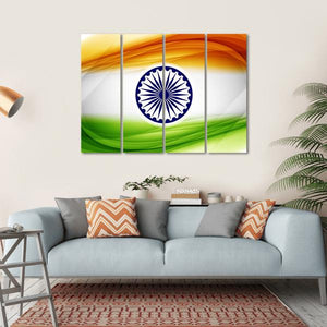 Celebrate India's spirit with this Indian Flag canvas wall art. Featuring an abstract representation with wavy lines, this vibrant piece showcases the colors of orange, white, and green, evoking a modern and patriotic feel.