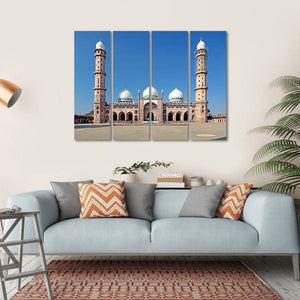 This canvas wall art captures the majestic Taj-Ul Masjid, showcasing its beautiful mosque architecture with tall minarets and multiple domes against a serene backdrop. The elegant palette features soft whites, tans, and blues, making it a striking addition to any space.