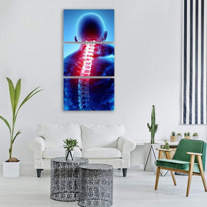 This impactful canvas art depicts the human spine in intricate detail, highlighting areas of pain with glowing red accents. Its modern, medical illustration style evokes a sense of intensity, making it a thought-provoking piece for any room.