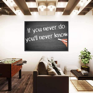 This canvas wall art features the motivational quote 'If You Never Do You Will Never Know' with a modern, minimalist design. Rendered in a striking black and white palette, it encourages reflection and inspires action, making it an ideal piece for your home or office decor.