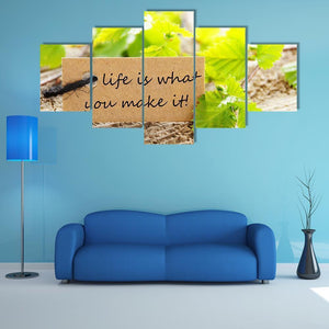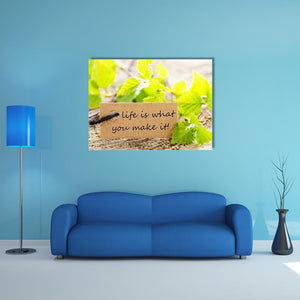 This canvas art features the inspirational quote 'Life Is What You Make It,' beautifully complemented by a rustic design and earthy colors. It brings a positive vibe, perfect for adding character to any space.