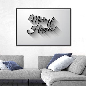This striking canvas features the motivational quote 'Make It Happen' in a modern script style. The black and white palette, combined with a thoughtful use of negative space, creates a powerful and inspirational vibe that enhances any wall decor.