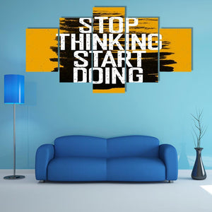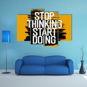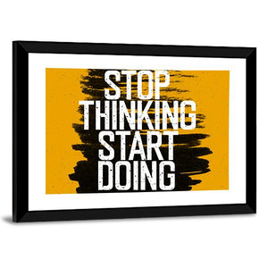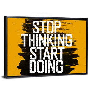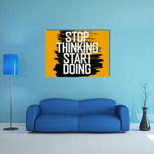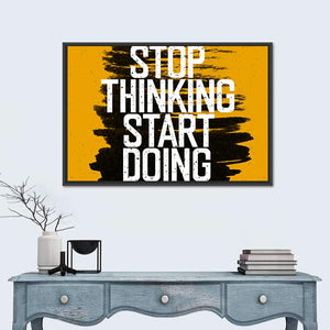 This canvas wall art features the motivational quote 'Stop Thinking Start Doing,' designed in a modern and bold style. With its energetic color palette of white, black, yellow, and orange, it's perfect for adding a touch of inspiration to any space.
