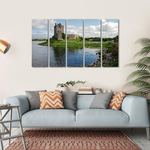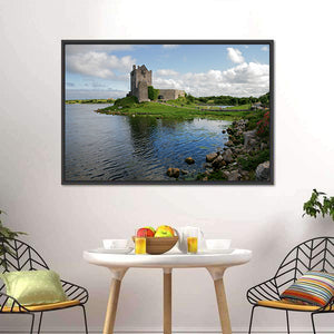 This artwork captures Dunguaire Castle set against a serene backdrop of a tranquil lake and sky. The calming palette of blues, greens, and grays creates a picturesque atmosphere ideal for any wall.
