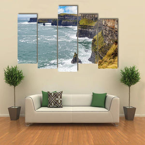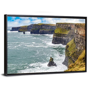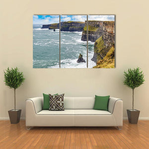 This canvas art captures the majestic Cliffs of Moher, showcasing wild coastal cliffs against a dramatic ocean backdrop. The vibrant greens and deep blues evoke an awe-inspiring atmosphere, making it a striking addition to your decor.