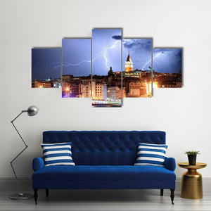 Lightning Over Istanbul City Skyline Canvas Wall Art