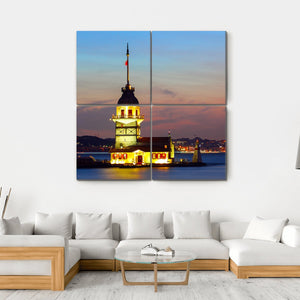 This canvas wall art captures Maiden's Tower in Istanbul, surrounded by serene waters. The realistic depiction draws viewers in with a magical blend of blues and warm colors, evoking a peaceful atmosphere. It's an ideal piece for adding character to any room.