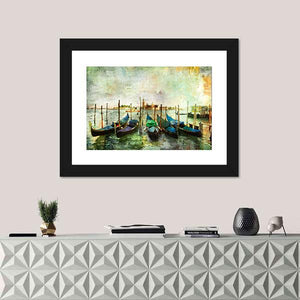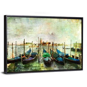 This canvas features iconic gondolas gliding through the serene canals of Venice, surrounded by charming buildings. With a palette of blue, green, and warm earthy tones, it captures a historical and artistic vibe that brings life to any space.