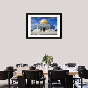 This canvas art features the majestic Dome of the Rock in Jerusalem, framed by a serene blue sky and historic architecture. Its striking gold and blue details capture the beauty of Islamic architecture, making it a meaningful addition to your wall decor.