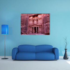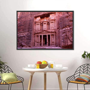 This canvas art captures the majestic beauty of Petra, showcasing its ancient architecture and intricate temple entrance. With a palette of warm reds, browns, and greys, it evokes a sense of awe and historical significance, making it a striking addition to your wall decor.