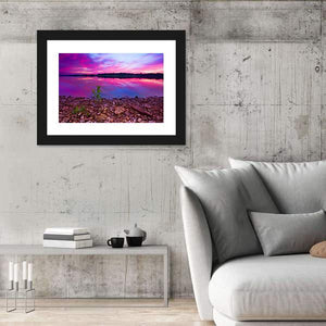 Capture the serene beauty of a Kansas lake at sunrise with this vibrant canvas wall art. This piece features a stunning reflection of clouds in various shades of purple, pink, and blue, creating a dramatic and calming atmosphere.