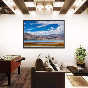 This canvas art captures the serene beauty of Tso Kar, featuring a calm, reflective lake surrounded by layered mountains and lush grasslands. The dramatic sky and rich colors create a majestic atmosphere, making it a lovely addition to any nature-inspired decor.