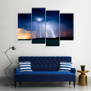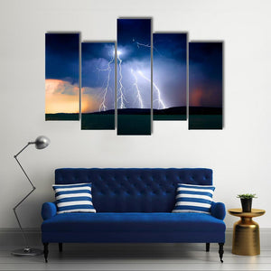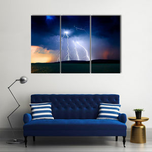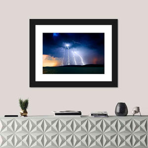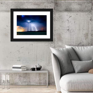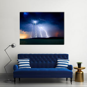 This striking canvas art captures a dramatic storm over Lake Balaton, featuring intense lightning strikes and dark storm clouds. The powerful scene is framed by rippling water and hills, making it a striking addition to any nature-themed decor.