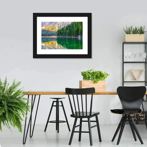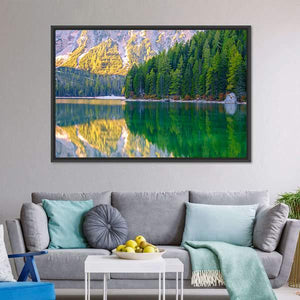 This beautiful canvas art captures the serene beauty of Braies Lake surrounded by majestic mountains and a lush pine forest. The bright, realistic colors evoke a natural calm, perfect for any space that needs a touch of the outdoors.