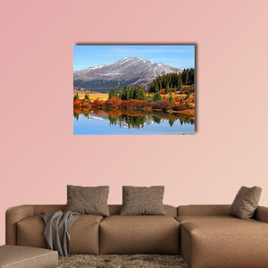 Experience the serene beauty of Buffehr Lake in autumn with this captivating canvas wall art. Featuring vibrant reflections of a snow-capped mountain and colorful foliage, this piece brings a peaceful yet majestic atmosphere to any space.