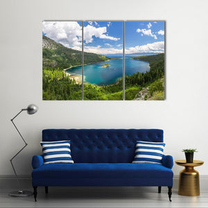 This canvas art captures the serene beauty of Emerald Bay, showcasing a panoramic view of a tranquil lake surrounded by majestic mountains and lush forests. With its vibrant blues and greens, it adds a touch of nature’s charm to any space.