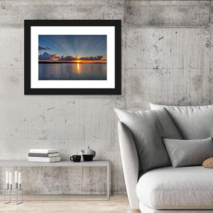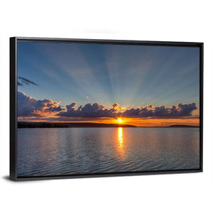 This breathtaking landscape artwork captures the serene beauty of a sunset over a tranquil lake. With photo-realistic details and a palette of blues, oranges, and whites, it creates an awe-inspiring atmosphere in any space.
