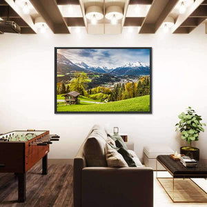Bavarian Alpine Village with Snow-capped Peaks Canvas Wall Art