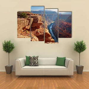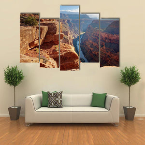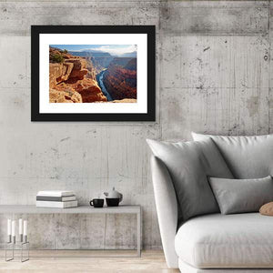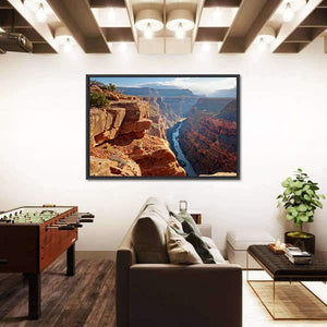 Immerse yourself in the grand beauty of the Grand Canyon with this striking canvas print. Featuring a high-angle view of sunlit canyon walls and the winding Colorado River, it captures serene and majestic landscapes in realistic detail.