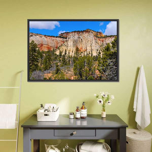 This canvas art captures the grandeur of Zion National Park, featuring majestic mountains, lush greenery, and a serene sky filled with clouds. Its realistic style makes it a beautiful addition to any nature-themed decor.