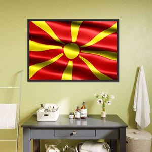 North Macedonia Flag Canvas Wall Art presents an abstract, modern take on the flag with a symmetrical sunburst motif in vivid red and yellow. A wavy, fabric-like texture and a bold, bright sense of motion give the piece a dynamic presence suited to modern home and room decor.