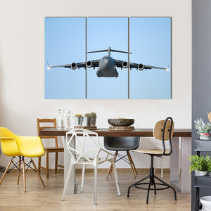This Flying Military Transport Plane Canvas Wall Art is a striking and powerful addition to any home decor. Featuring a military transport plane flying straight at the viewer, this canvas evokes a sense of strength and intensity. Perfect for art lovers or those simply looking to enhance their space, this print is sure to make an impact.