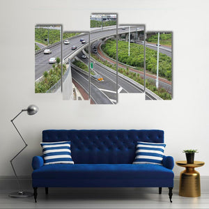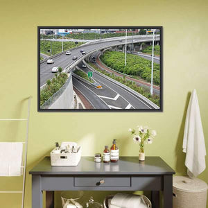 This canvas art captures the dynamic beauty of a busy highway interchange in Auckland, featuring cars and lush greenery viewed from a high angle. Its modern and realistic style makes it an ideal addition to contemporary decor.