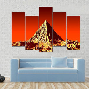 This canvas art features a striking pyramid set against an alien landscape, with a vibrant sky in shades of orange and red. The dramatic composition creates an otherworldly atmosphere that's perfect for enhancing any room's decor.