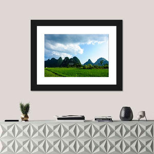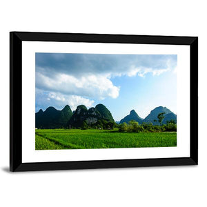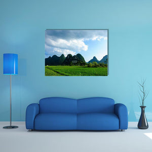 Summer Karst Mountains and Rice Fields Canvas Wall Art
