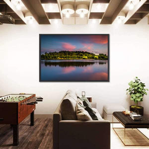 Sunset Pond with Pink Cloud Reflections Canvas Wall Art