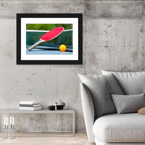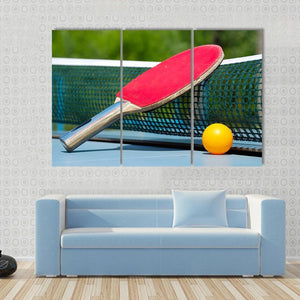 This canvas art captures a vibrant close-up of a ping pong paddle and ball atop a green net. The playful and active vibe makes it a great addition to sports-themed rooms or game areas.