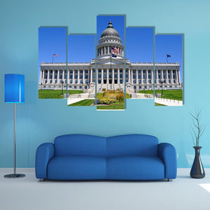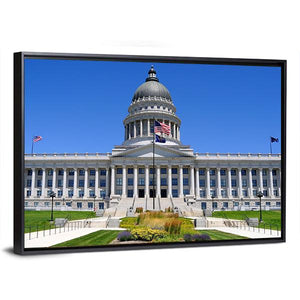 This captivating canvas art features the majestic Utah Capitol Building, set against a patriotic and grand backdrop. With its symmetrically centered composition and rich blue and white hues, it conveys an official ambiance perfect for any room.
