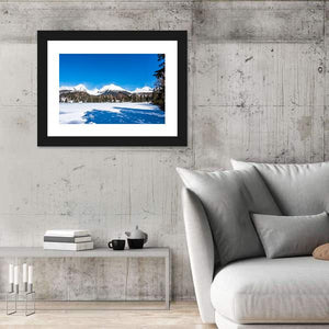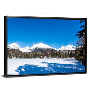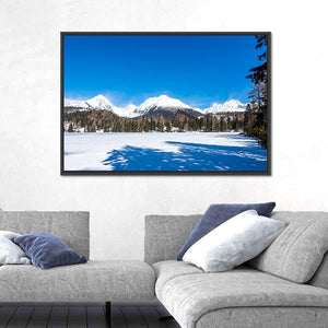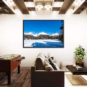 Frozen Lake and Snowy Mountains Canvas Wall Art