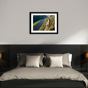 Experience the tranquil beauty of the Elbe River as it meanders through the lush landscapes of Saxony. This piece captures the majestic cliffs and rich forests, evoking a serene and natural atmosphere that's perfect for any nature lover.