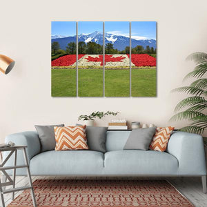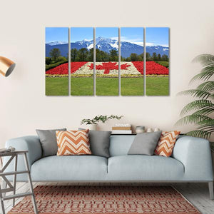 Celebrate Canada with this vibrant floral interpretation of the maple leaf flag. Featuring a beautiful blend of red, white, green, and blue, this landscape artwork evokes a patriotic and scenic atmosphere, making it a striking piece for any room.
