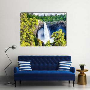 Experience the power and serenity of nature with this stunning depiction of Helmcken Falls surrounded by lush greenery. The realistic portrayal captures the majestic waterfall, cliffs, and trees, inviting a tranquil atmosphere into your space.